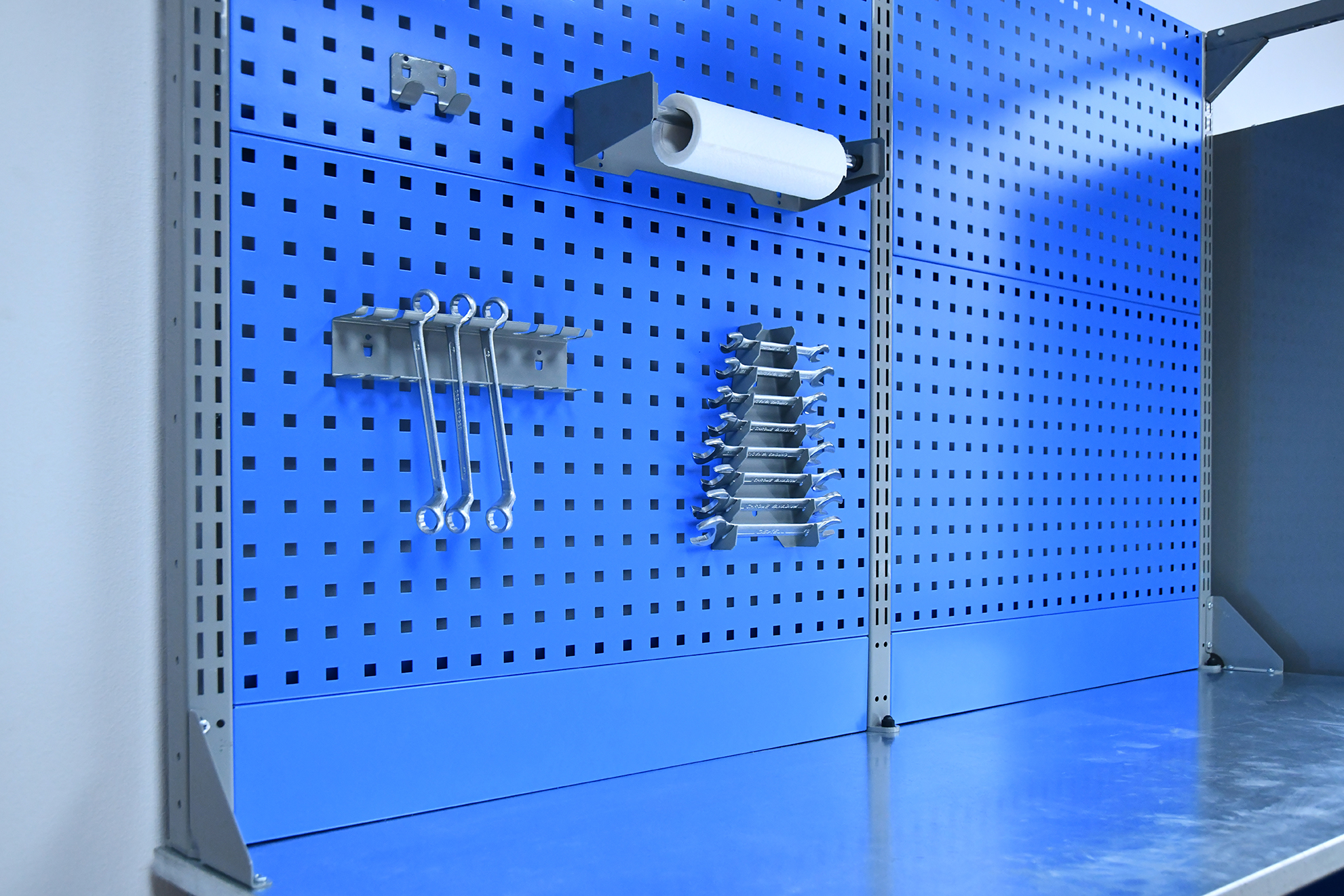 - Экраны защищают стену от масла, стружки, искр и других загрязнений, а также служат основой для крепления полок, крючков, держателей и других аксессуаров, улучшающих эргономику рабочего места.